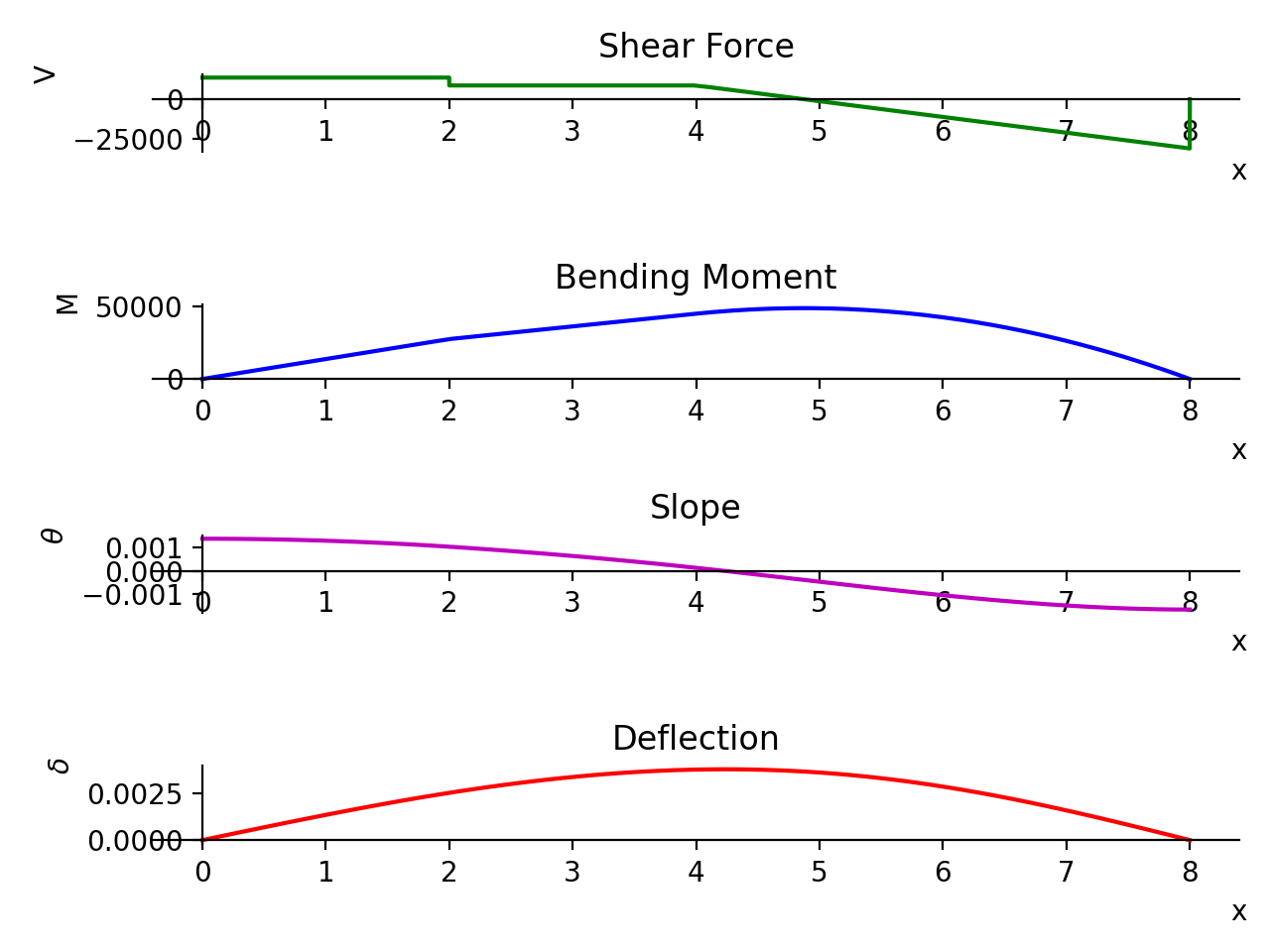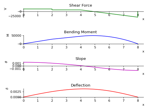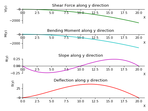 Returns a subplot of Shear Force, Bending Moment, Slope and Deflection of the Beam object along the direction specified.