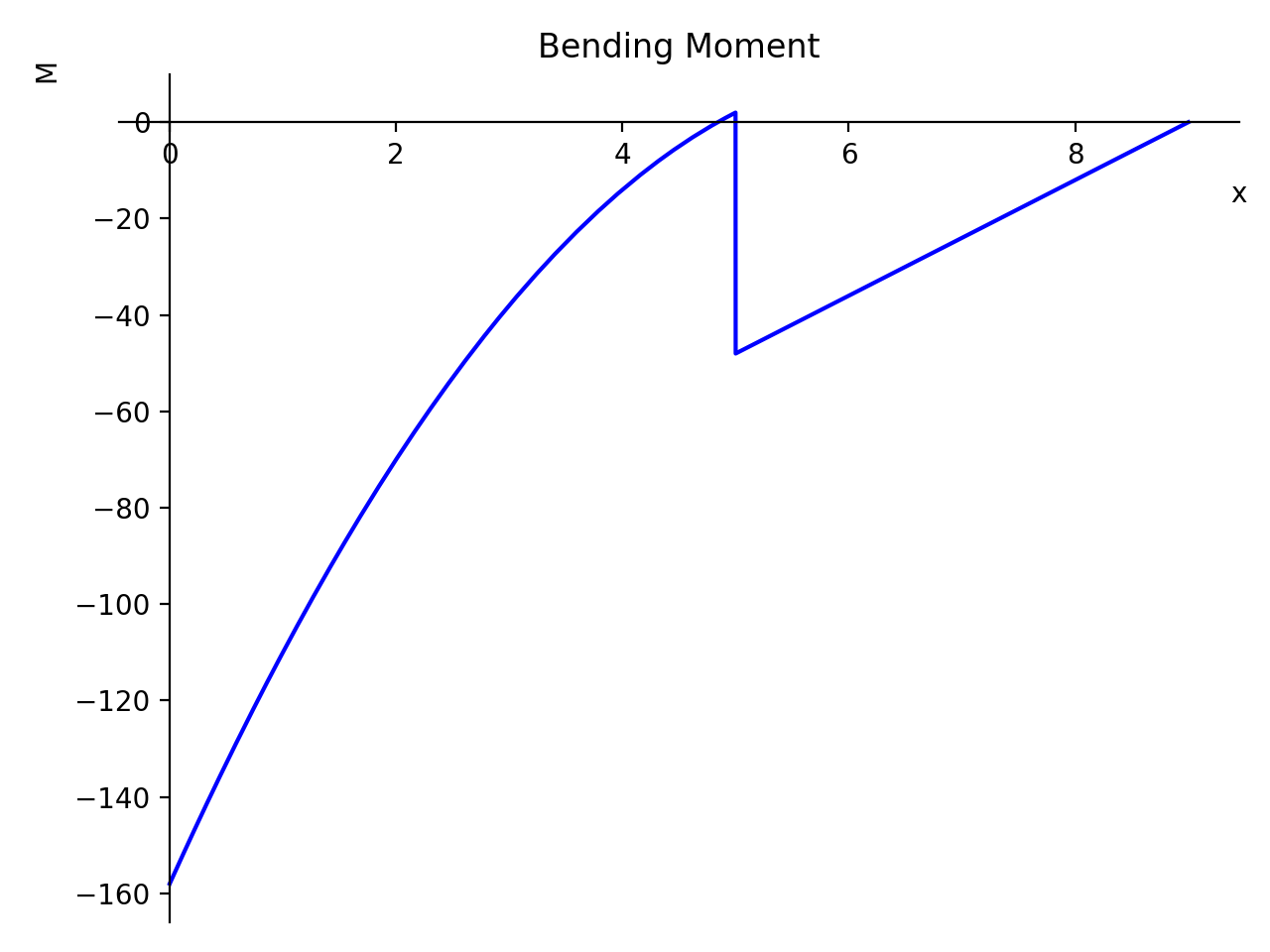 At this point, the beam is fully defined and the internal shear and bending moments are calculated: